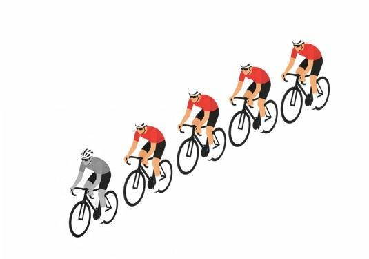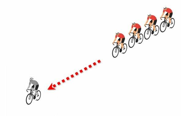 - Don't overtake to go to the front of the group when it's not your turn. This is not only inefficient but dangerous as no one is expecting to be overtaken in a paceline. Wait patiently for your turn to reach the front of the group, it's your opportunity to recover and let the group evenly share the extra effort at the front. If you're behind the lead rider and they're overstaying their time at the front or are slowing, politely remind them to take a break